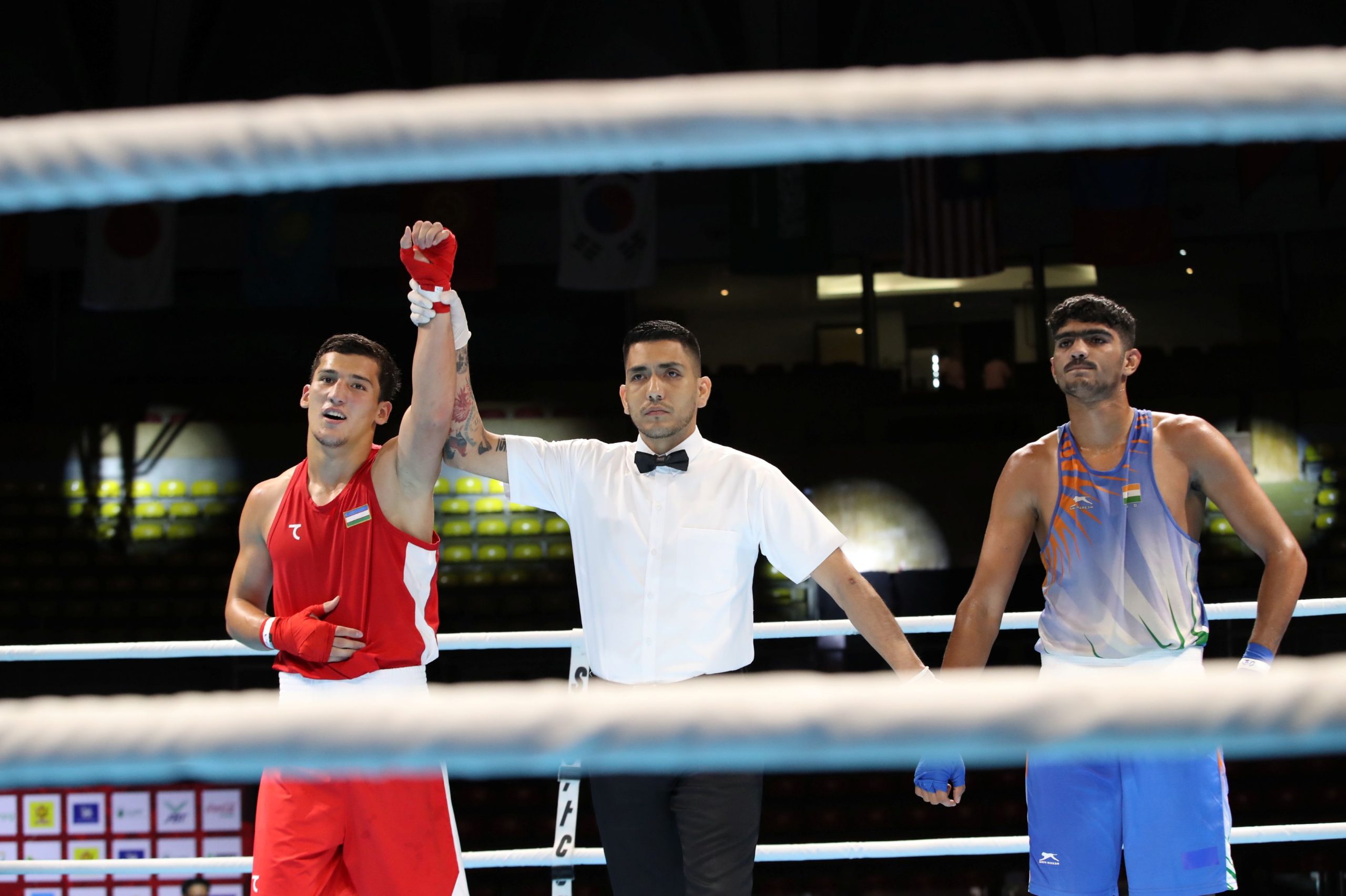 The evening session saw commanding wins from Haosheng Zhang (CHN), Ashirbay Bibarys (KAZ), and Muhammadjon Yakupboev (UZB). Light heavyweights Taibekov Timur (KAZ) and Hyeon-Seung Jeong (KOR) both advanced with stoppage wins, as the men’s divisions delivered fast-paced and competitive action.
