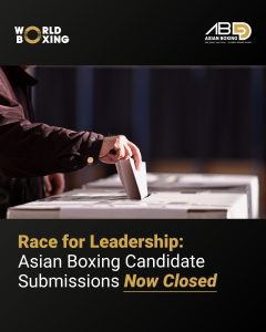 The deadline for nominations for the upcoming Asian Boxing Congress elections officially closed on June 25, 2025. The Election Committee will meet tomorrow June 26, 2025 at 5:30pm (Bangkok time) to begin its work reviewing all submitted applications in accordance with the highest standards of eligibility and documentation. “I’m pleased to confirm that the candidacy […]